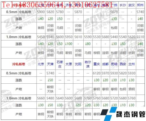 全國23個主要市場1.0mm 冷軋板卷平均價格5630元/噸,較上個交易日下調38元/噸。